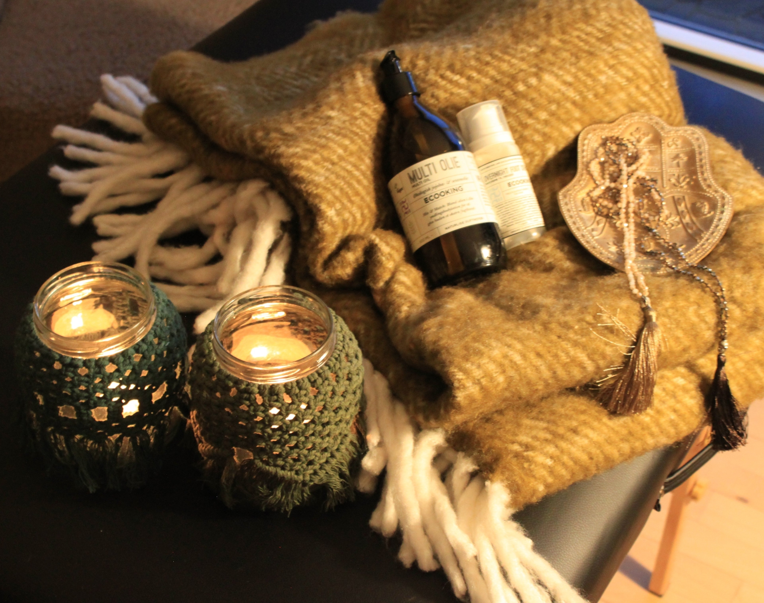 Jeg har massagebriks, olie, lagen og tæppe med. Jeg sørger for alt det praktiske, det eneste du skal gøre er at nyde massageoplevelsen.